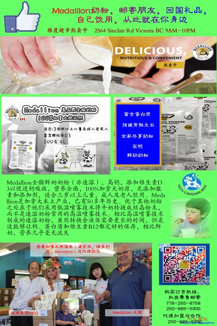 为庆祝维度集团旗下的维度超市成为Medallion奶粉加拿大西海岸的独家代理,从今天起,进行奶粉大促销,