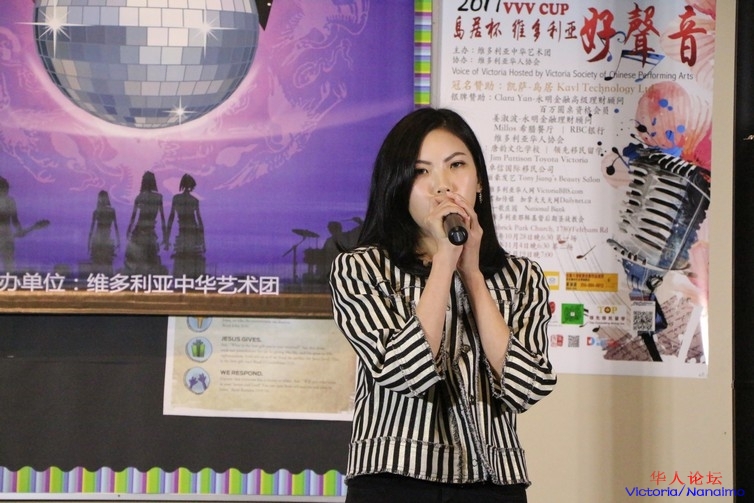 来自 Mt. Douglas 高中的 Olivia 演唱的是张碧晨翻唱版本的《她说》,她的嗓音安静优美,真假声转换的也十分自然。同样,台下的支持者也是一大群。