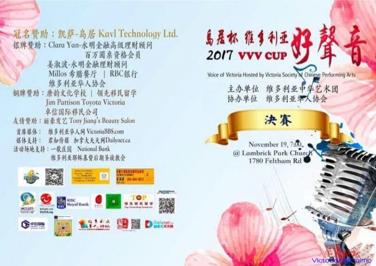 购票从速 - 2017岛居杯维多利亚好声音决赛周日19号登场