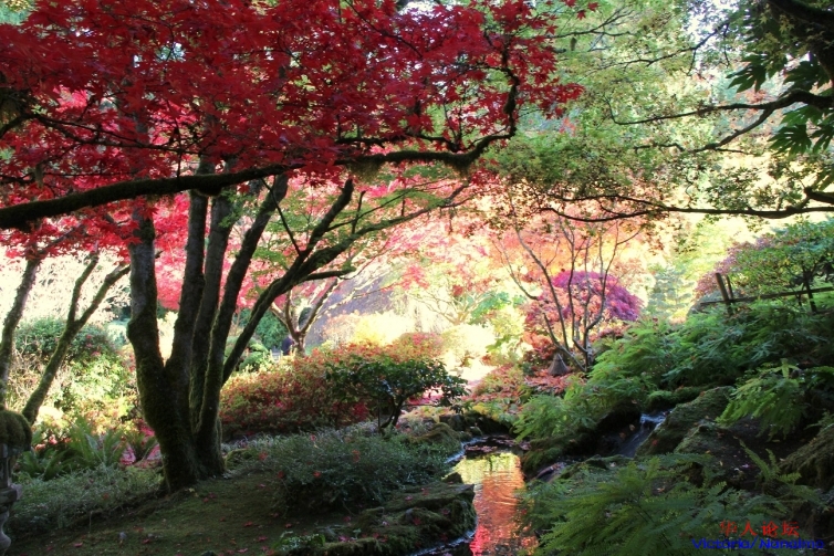 » 秋色中的片片红叶,片片红叶晕染的布查花园