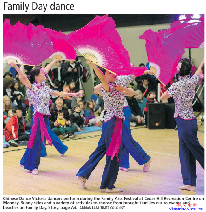维多利亚中华舞蹈团在2月12日家庭节的演出,都上了当天报纸的头条。