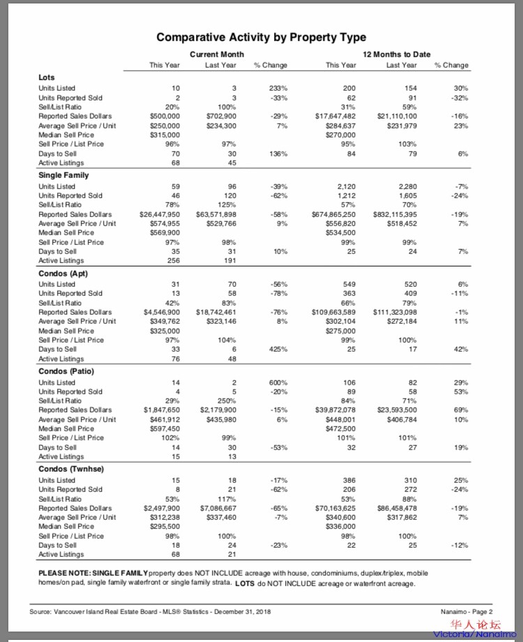 纳奈莫2018年12月份独立屋成交遇冷,但成交价坚挺!